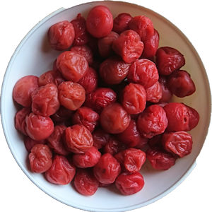 | 梅は三毒を断つ 三毒とは、食の毒と血の毒、水の毒です。 徳島県神山町で栽培されいる、竜峡という品種の小梅で、青果規格『秀』の最上級品を使い、紫蘇を使って漬け込みをし、一粒一粒丁寧に土用ぼしを行い、昔風のやや酸っぱい味にしてる、国産の梅干しです。玉の大きさは小小になっています。(塩分約10%) 梅干しを一日一粒食べて医者いらず!